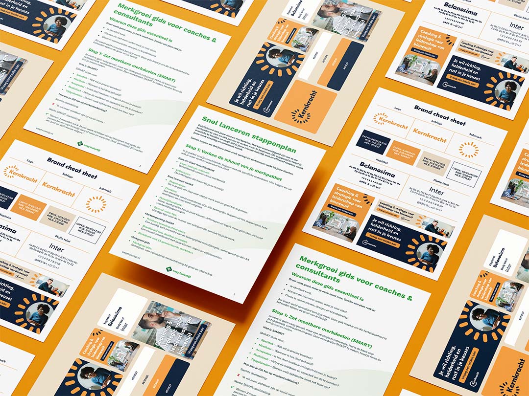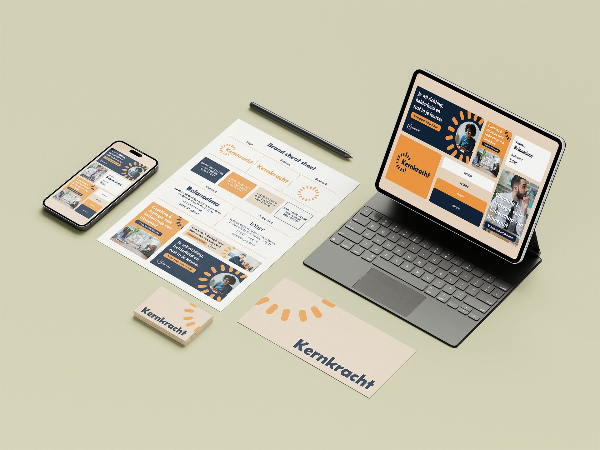 Professionele uitstraling: een compleet merkpakket waarmee je meteen kunt starten op website, socials en drukwerk. -