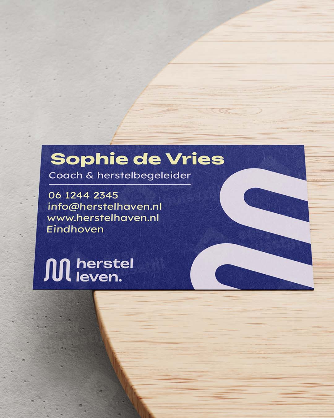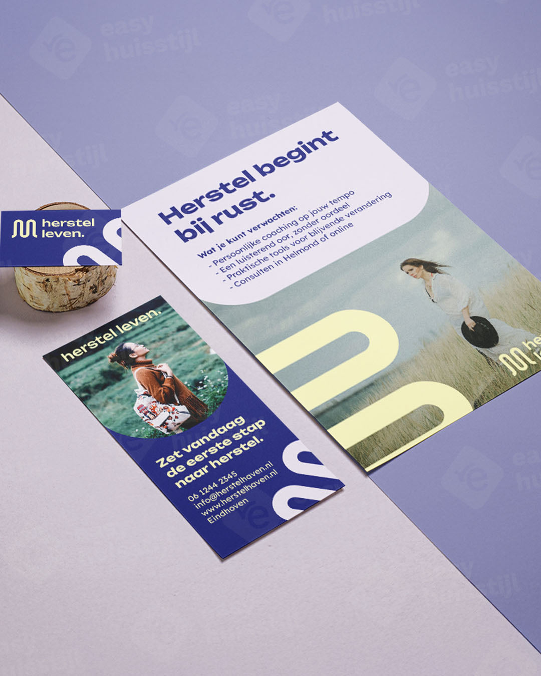 Standaard merkpakket: Het merkpakket wordt geleverd met de merknaam zoals te zien is in de afbeeldingen. De bijbehorende domeinnaam (bijvoorbeeld herstelleven.nl) kan je optioneel overnemen voor €25. Je ontvangt hiervoor een verhuiscode en instructies.